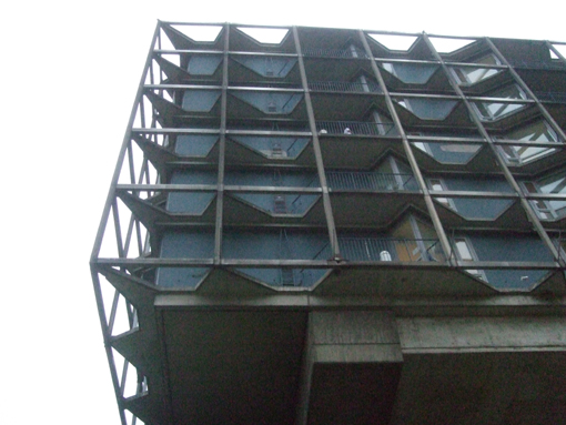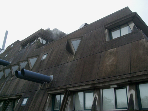 The Institute for hygenics and medical micro-biology was built in 1966-74 by Fehling and Gogel. They developed an own language combining the organic approach of Hugo Häring and Hans Scharoun and Le Corbusiers formal brutalism as found in the Carpenter Center built few years before. Both were students and followers of Hans Scharoun, whom built the Philharmonie and the state library.