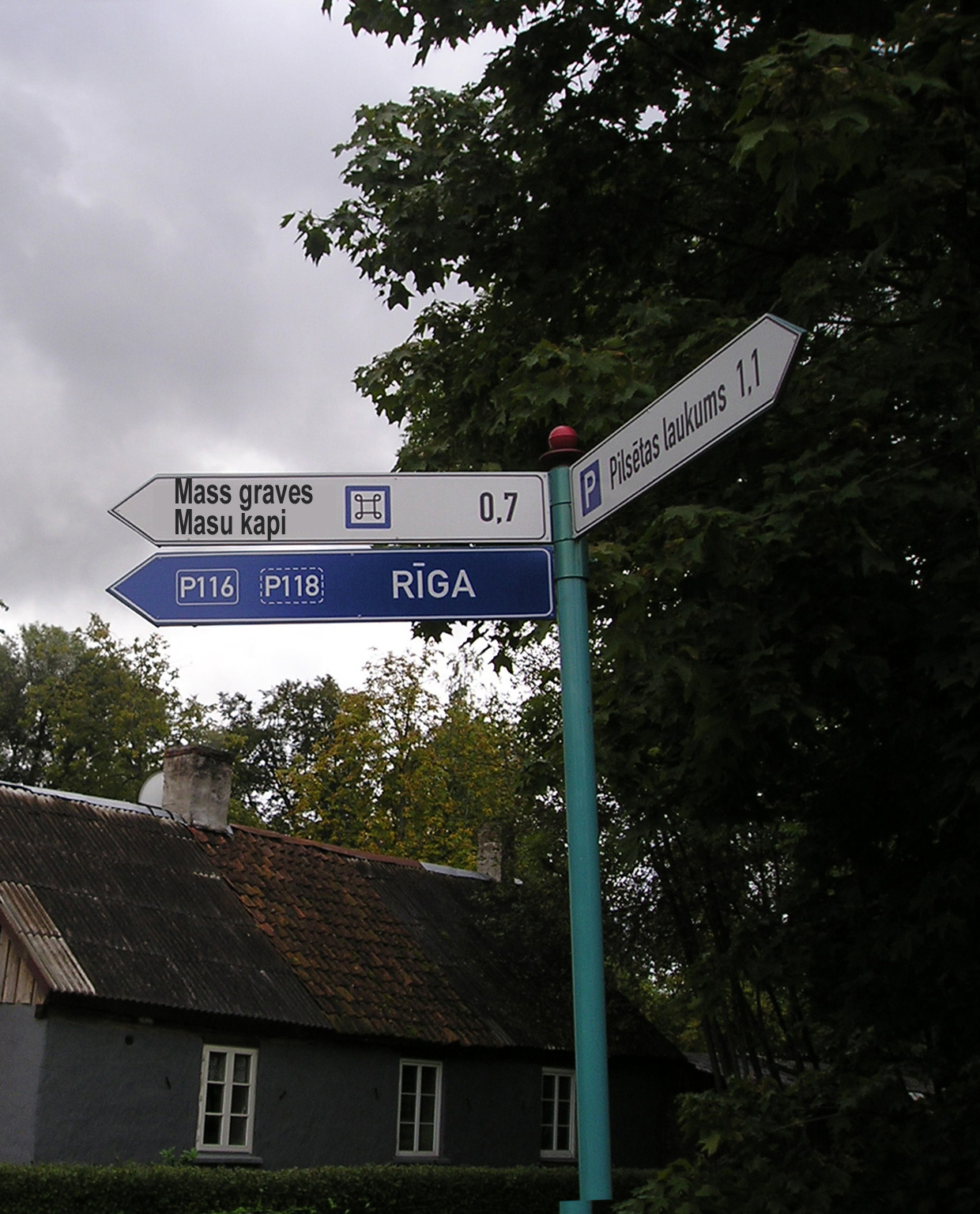 It is possible to remember and commemorate the murdered Jews of Kuldiga at a variety of places. At the sites of the mass executions first of all an access way should be guaranteed. The visit to these places, which we undertook with the only survivor of the Shoa living in Kuldiga, Ruth Friedlendere, was a particular experience. All the memorial stones from Soviet times are in disastrous conditions. The victims of the extermination are mentioned as “citizens of the USSRͱ, which is not showing that the large majority was Jewish, with the danger of concealing the past.